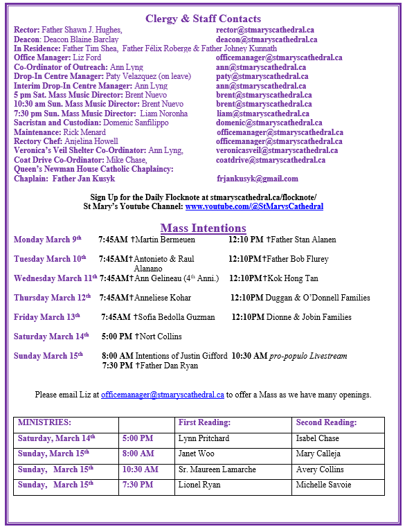 Posted at 11:13h in Bulletins by St Marys Cathedral