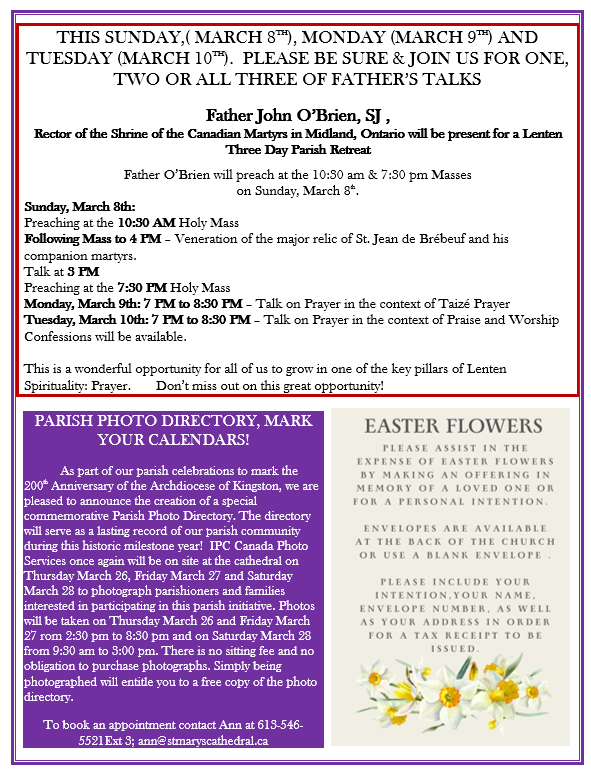 will be present for a Lenten Three-Day Parish Retreat
